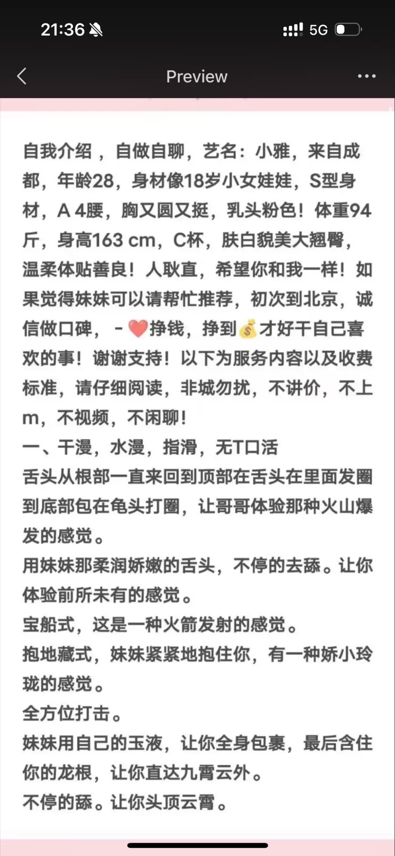 凡是有要求路费/定金/保证金/照片验证/视频验证等任何提前付费的行为,千万不要上当。同时也请注意仙人跳,在寻欢前不要露富和带过于贵重随身物品。本站为分享信息并不对寻欢经历负责,碰到有问题的信息,请及时举报给我们删除信息。