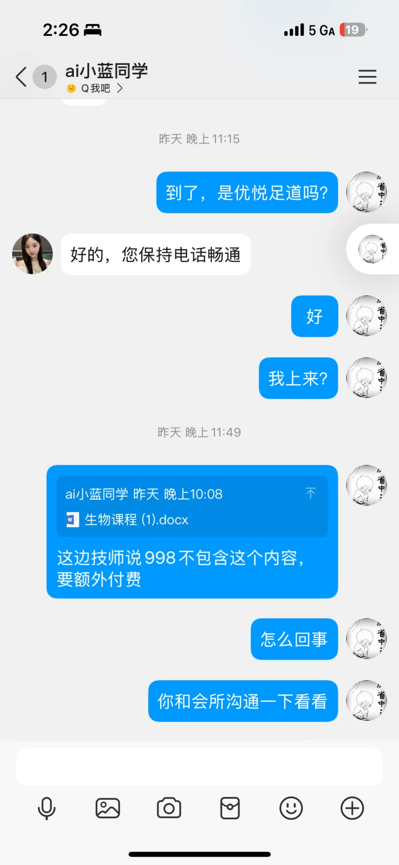 这个中介发的课表是¥998,九十分钟全套且承诺带做。结果到了会所,技师按摩的时候说要加钱才能享受特殊服务,结果一个连98号油都不带的一小时服务要收我三四千。这个混蛋中介避雷吧,QQ号和马甲是3887211763393397645