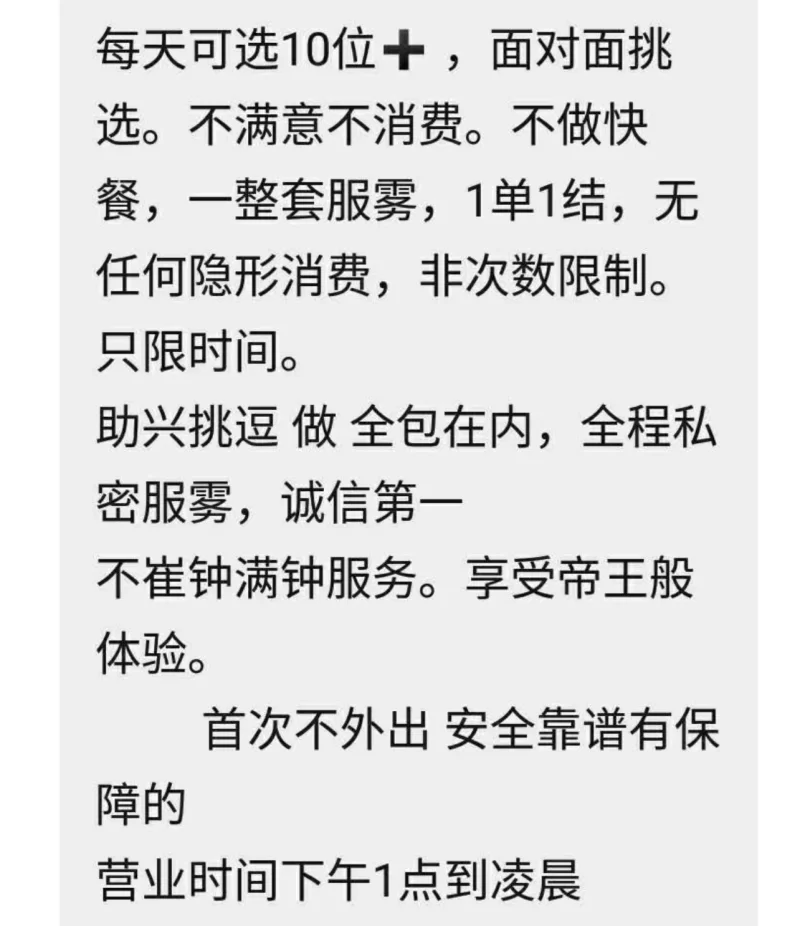 凡是有要求路费/定金/保证金/照片验证/视频验证等任何提前付费的行为,千万不要上当。同时也请注意仙人跳,在寻欢前不要露富和带过于贵重随身物品。本站为分享信息并不对寻欢经历负责,碰到有问题的信息,请及时举报给我们删除信息。